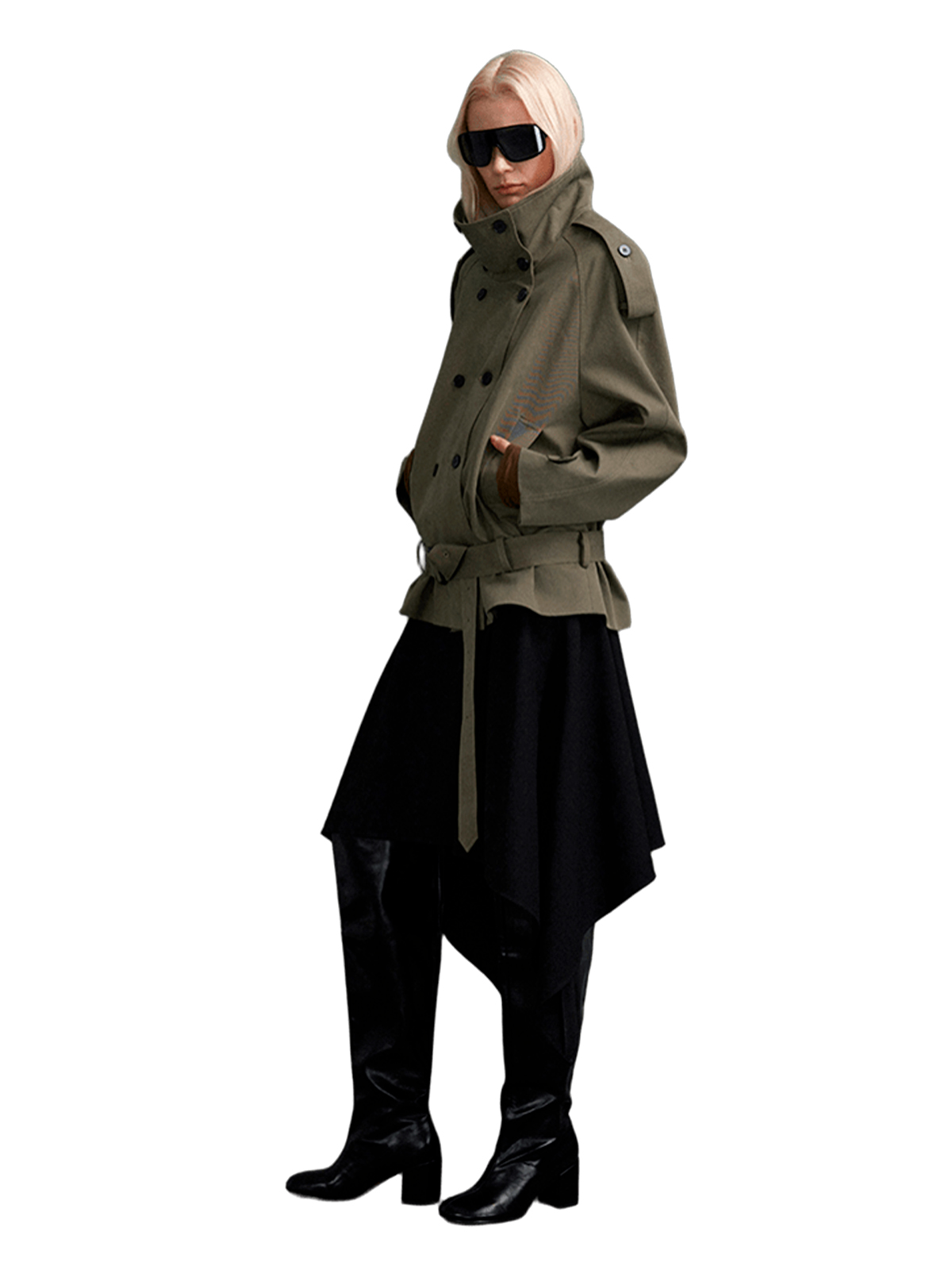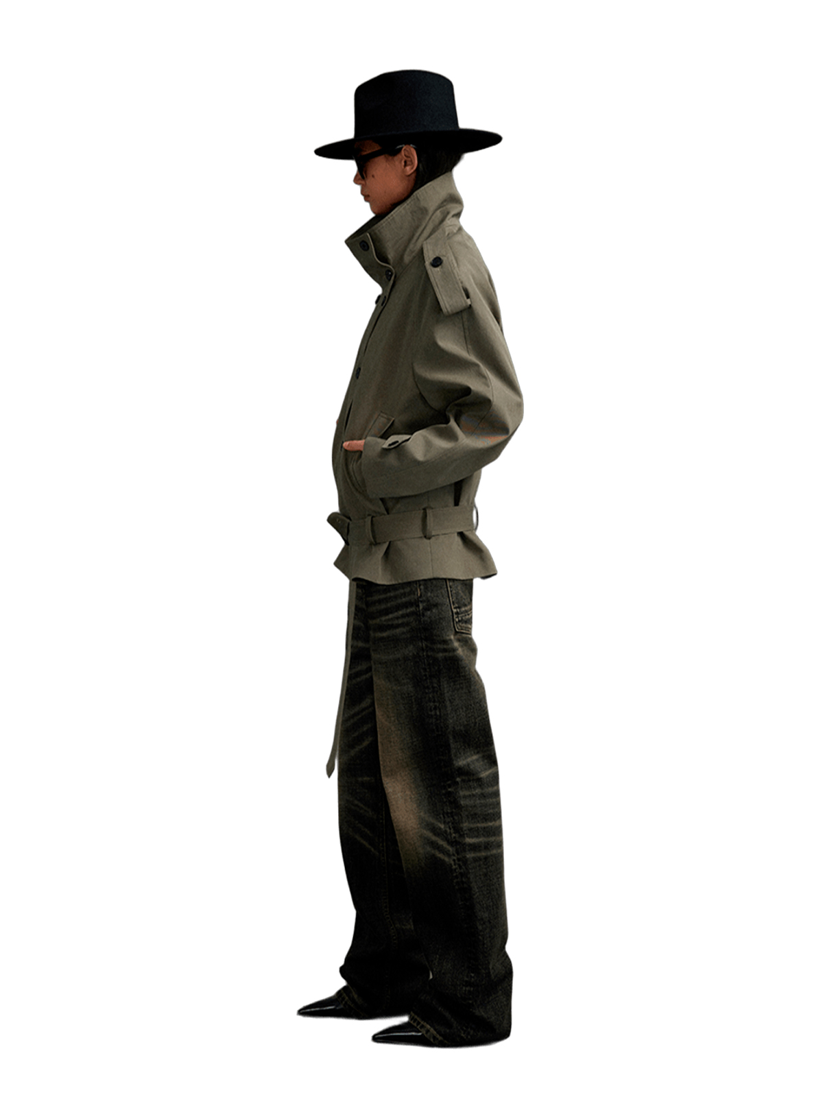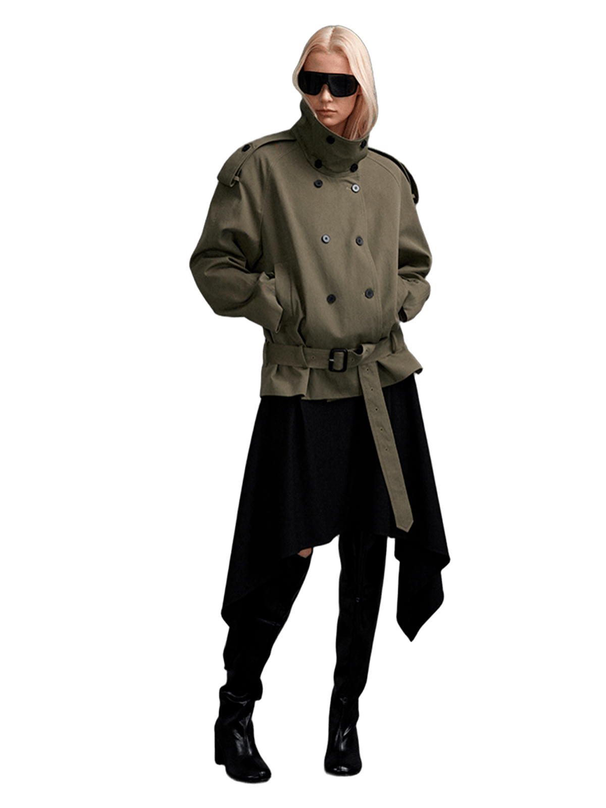 Короткое пальто-тренч с воротником стойкой
